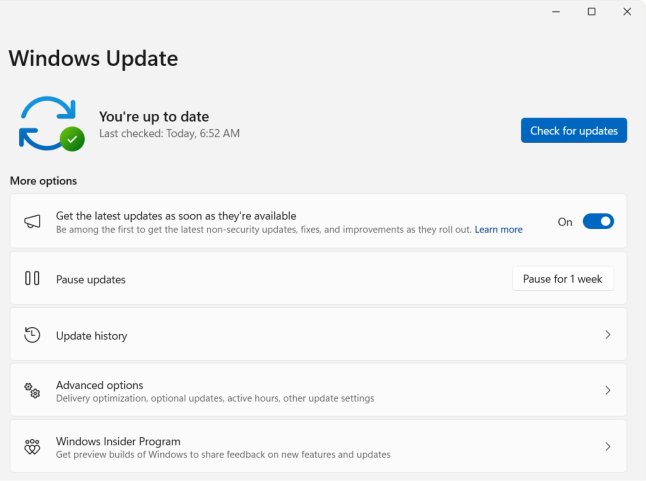 Per assicurarti di avere accesso alle funzionalità più recenti e avanzate di Windows, apri Impostazioni > Windows Update. Dopodichè seleziona Verifica disponibilità aggiornamenti.
