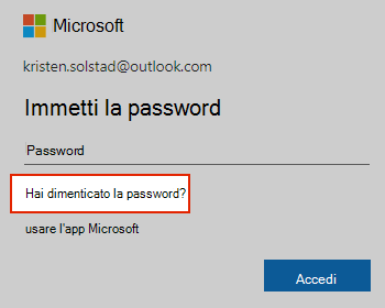 Importante: Per proteggere il tuo account e i relativi contenuti, gli agenti di supporto di Microsoft non sono autorizzati a inviare collegamenti per la reimpostazione della password o ad accedere e modificare i dettagli dell'account.