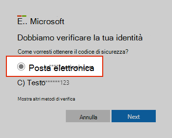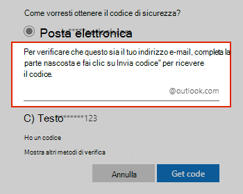 3. Microsoft invierà un codice di verifica all'indirizzo di posta elettronica o al numero di telefono selezionato.