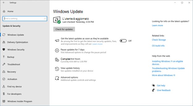 Gli aggiornamenti della configurazione di Windows verranno installati durante l'orario di attività?